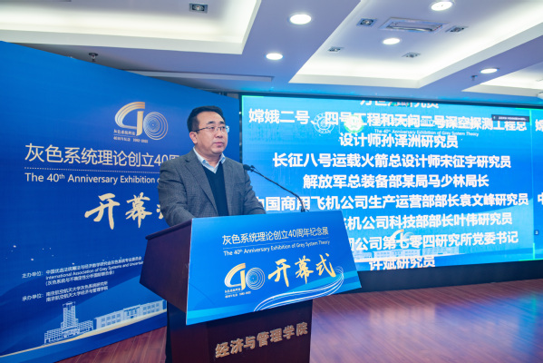 单忠德代表学校对莅临开幕式的领导嘉宾表示诚挚欢迎,对给予南航事业发展关心支持的社会各界表示衷心感谢。他指出,党的二十大报告强调加强基础研究、增强自主创新能力对我国实现高水平科技自立自强的重要意义,南航始终坚持“为党育英才,为国铸重器”的初心使命,大力支持本土原创灰色系统理论的发展,为发展中国原创学说、传播中国学术声音贡献了南航智慧和南航力量。希望以此次纪念展为契机,进一步深化交流合作,以更加开放的视野研讨新时代灰色系统理论,凝聚智慧力量,推动创新发展,使中国学者原创的灰色系统理论不断发展壮大,让中国原创学说传播全球,更好地“为党育英才、为国铸重器”,更好地服务社会、报效祖国,携手为构建人类命运共同体作出新贡献、谱写新篇章。