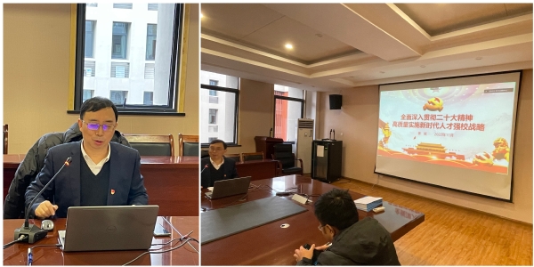 2022年12月1日下午,自动控制系在学院1-403会议室召开自动控制系支部扩大会议。副校长姜斌教授参加自动控制系支部扩大会议并为参会教师讲授了题为“全面深入贯彻二十大精神高质量实施新时代人才强校战略”的专题党课。会议由自动控制系支部曾庆化书记和彭聪主任共同主持,自动控制系支部党员和非党员教师均参加了该扩大会议。为了最大限度扩大受众面,该会议专门为受疫情管控的居家老师开设了线上会议室。