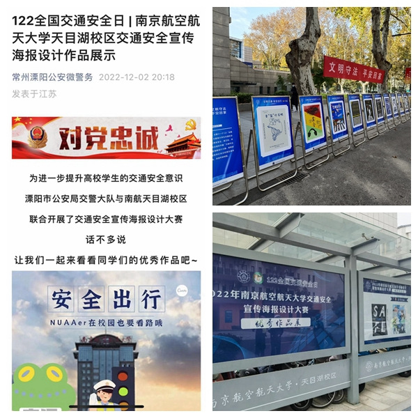 围绕“文明守法,安全回家”的活动主题,保卫处、学生处、研工部等单位联合举办了2022年第四届大学生交通安全宣传海报设计大赛,吸引了众多学生积极参与。优秀获奖作品分别在三校区校园内进行了展示,不仅得到了师生们的一致点赞,还获得了公安部门的高度肯定。