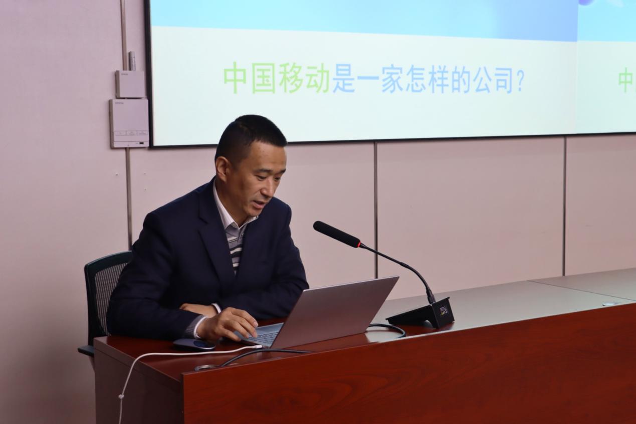 在企业与学生面对面环节,围绕同学们关心的就业问题,戚世杰对中国移动公司概况、人才需求、员工发展等方面进行了详细的介绍。通过该环节,一方面为共建学生党支部和优秀学生提供了实习和就业机会,另一方面也帮助与会学生党员树立了正确的就业择业观,使大家能够对照企业要求明确自身努力方向。