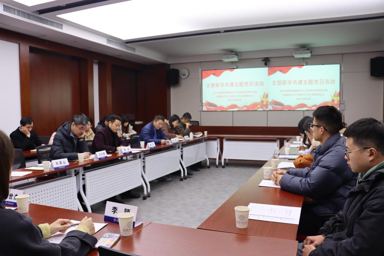 12月2日上午,信息化处党支部与南京移动玄武秦淮党总支、经管学院研究生第四党支部在将军路校区10523会议室开展支部联学共建活动。南京移动玄武秦淮党总支校园中心主任戚世杰、副主任彭舟波及相关负责同志,信息化处党支部书记、处长张焱,副处长王兴虎、谢健及支部全体党员,经管学院研究生第四党支部书记李明珠、纪检委员陈玉婵及全体支部党员参加了本次活动。活动由张焱主持。