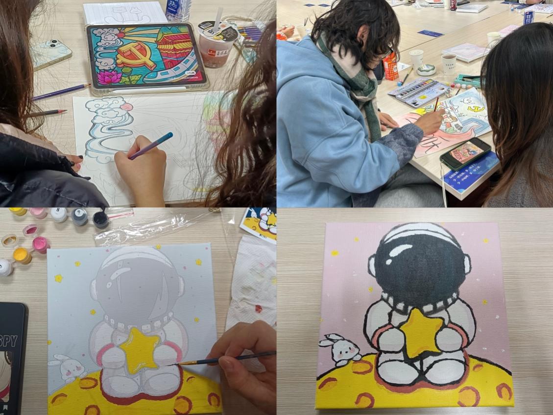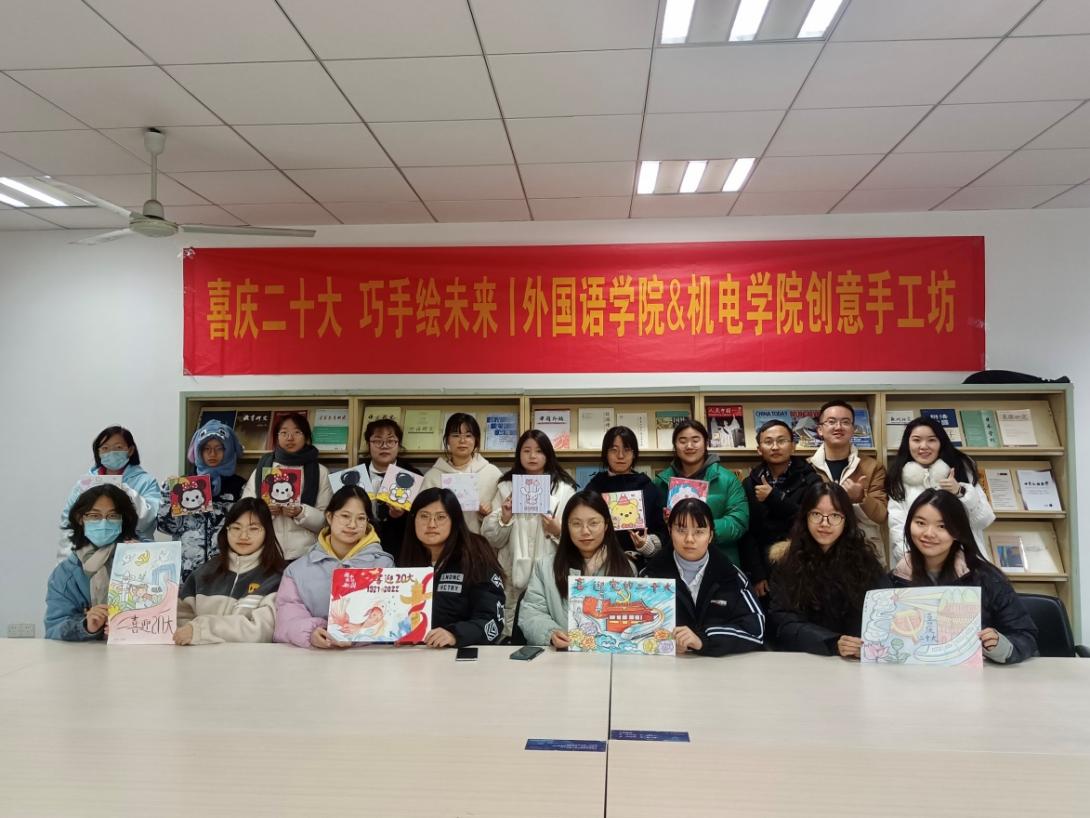 为了庆祝党的二十大胜利召开,大力弘扬以爱国主义为核心的伟大民族精神,12月3日,外国语学院与机电学院联合开展了“喜庆二十大,巧手绘未来”创意手工坊活动。鼓励同学们以绘画形式表达对祖国的美好祝福,培养当代大学生的爱国情怀。外国语学院与机电学院辅导员、学生党员和入党积极分子参加了本次活动。