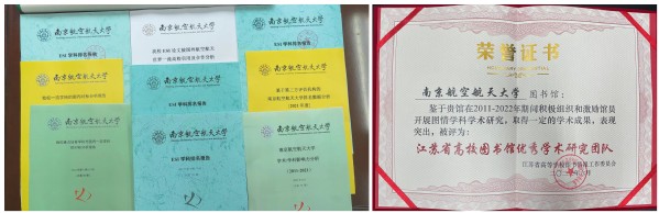 在学科评价服务方面,图书馆紧密围绕学校“双一流”建设、“一体两翼”学科布局,定期发布最新的ESI学科排名、研究前沿热点、学科对标分析与智库评价等方面的研究报告,为学校相关职能部门提供详实可靠的数据支撑和决策参考。以用户需求为导向,开展评价理论与方法的培训,为工信部企事业单位、高校提供学科建设、人才引进、政策制定和智库建设等方面的决策咨询。2018年加入工信智库联盟,2019年入选中国智库索引(CTTI)来源智库。研究成果连续多年荣获江苏省科技情报成果奖和华东地区科学技术情报成果奖,2020年获学校第八届哲学社会科学成果奖二等奖。2022年荣获江苏省高校图书馆优秀学术研究团队。