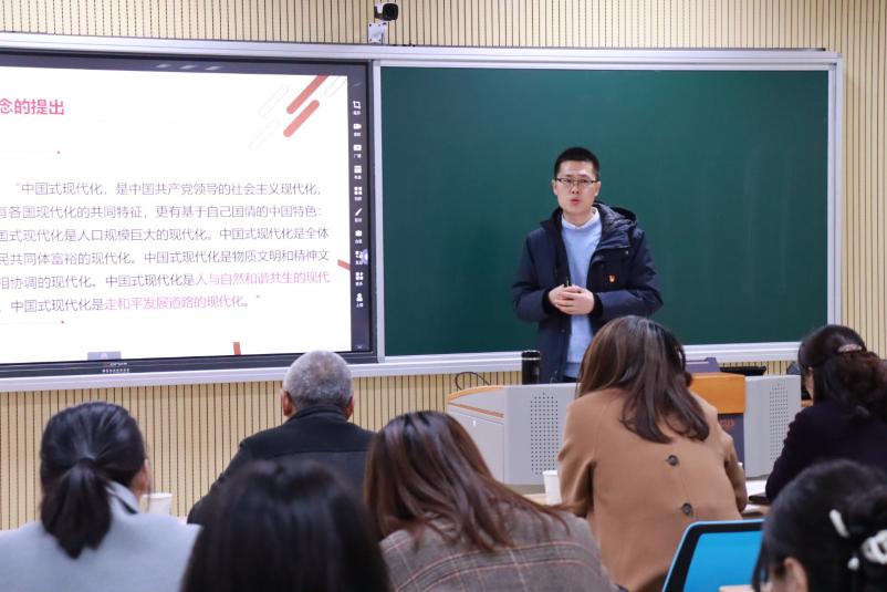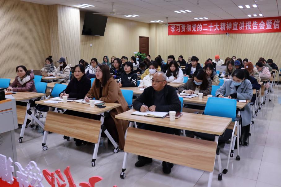 12月6日下午,艺术学院邀请学校党的二十大精神宣讲团成员、马克思主义学院惠成刚老师,为艺术师生讲授了党的二十大精神专题宣讲报告暨信仰公开课。报告的主题是“人类命运共同体理念的深刻内涵及新文明意义”。艺术学院领导班子成员、党委委员、师生党员、积极分子、学生代表参加了此次报告会。会议由学院党委书记张钟勤主持。