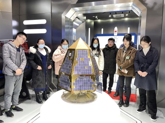 在航天学院副院长朱旭东的专业讲解下,共建双方一同参观了航天教育教学基地,老师们循着中国航天史的发展脉络,在航天强国建设蓝图的历史印迹中,感悟“两弹一星”精神、载人航天精神、探月精神、北斗精神等中国航天精神谱系内核,感受南航人用实际行动践行“为党育英才、为国铸重器”的使命担当。