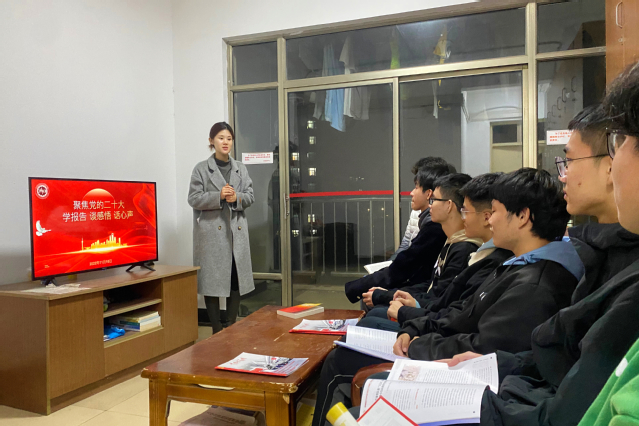 为深入学习贯彻党的二十大精神,营造奋进新征程的良好氛围。近日,机电学院2021级团总支于怡园学生宿舍开展 “怡”起学习党的二十大,辅导员聂敏敏、王曦和二十余名学生代表参加了此次团课学习。