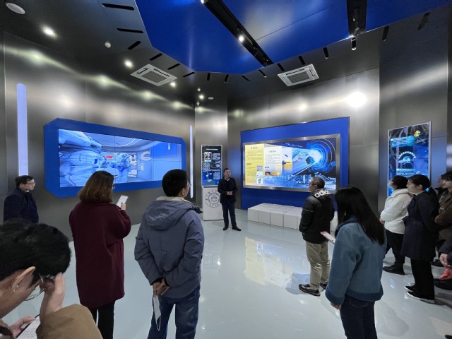 会后,双方支部成员一同参观了航天教育教学基地。在航天学院副院长朱旭东的带领下,大家详细了解了中国航天的发展历史,深刻感悟了“两弹一星”精神、载人航天精神、探月精神、新时代北斗精神等中国航天精神的深邃内涵。