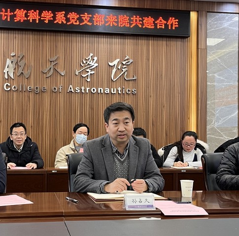 最后,孙占久作总结致辞,他表示,航天控制工程与计算科学之间存在着深厚的学科联系,两个支部、两个系之间有着巨大的合作空间,希望本次共建协议的签订能够成为双方深入合作的基点,一同为南航人才培养和科研发展贡献力量。