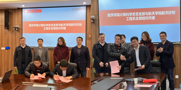 为深入学习贯彻党的二十大精神,加强学院基层党建,促进学科交叉融合发展,12月6日,航天学院航天控制工程系党支部与数学学院计算科学系党支部开展结对共建活动。数学学院党委书记许静,航天学院党委书记孙占久,共建支部党员共30余人出席本次活动。活动由航天学院航天控制工程系党支部书记高有涛主持。