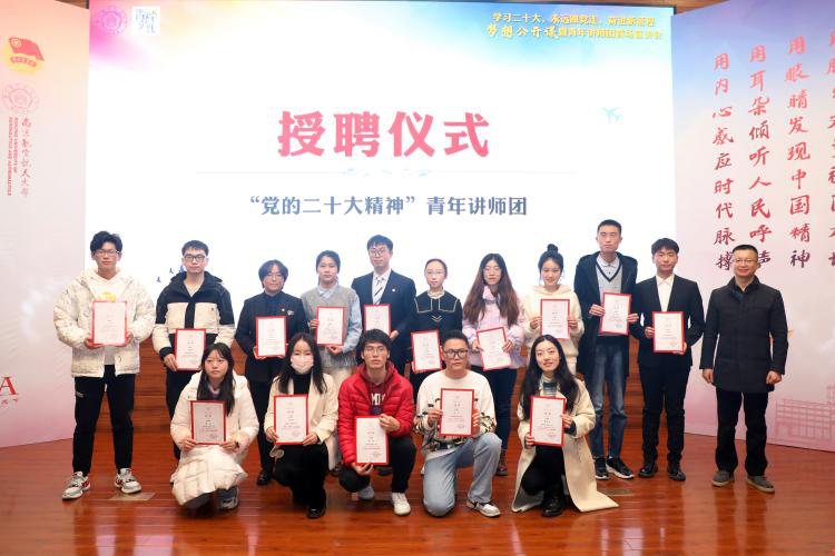 为推动党的二十大精神学习走深走实,校团委组建了“党的二十大精神”青年讲师团,李秀龙为24名青年学子组成的青年学生讲师团颁发聘书。