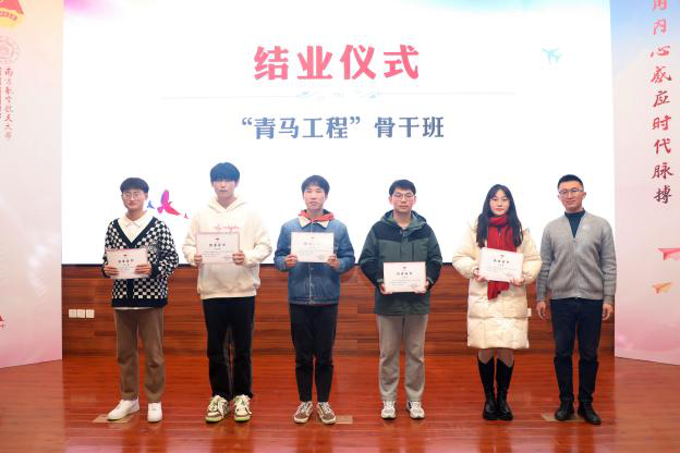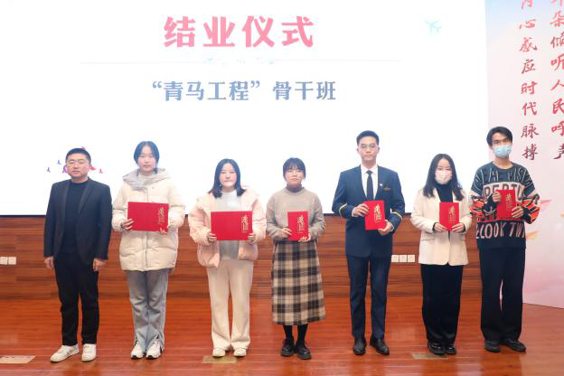 赵铮为“青马工程”骨干班学员颁发了结业证书,张旺为“青马工程”骨干班“标兵学员”“理论学习先锋”等优秀学员代表颁发了荣誉证书。