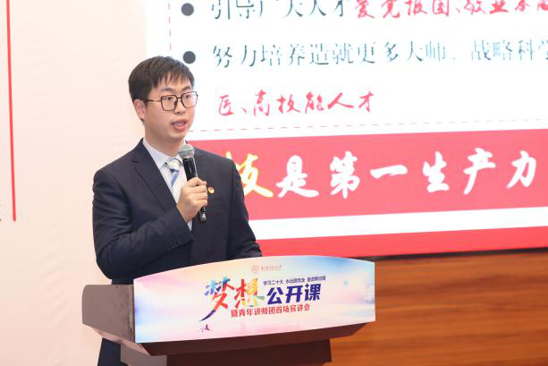 近日,我校“学习二十大 永远跟党走 奋进新征程”梦想公开课暨青年讲师团首场宣讲会在将军路校区一号楼四楼报告厅举行。团省委高校部副部长张旺,团市委一级调研员、学少部部长兼少先队总辅导员朱薇薇,江苏省妇女儿童福利基金会副理事长王华,雨花区团委副书记茆弼春,新华日报全媒体科教新闻部主任记者杨频萍,校团委书记王静,校宣传部副部长李秀龙,教务处副处长柯世堂,校团委副书记赵铮、王洋,研工部教育管理处副处长范伟,各学院团委书记及学生代表参加了此次活动。