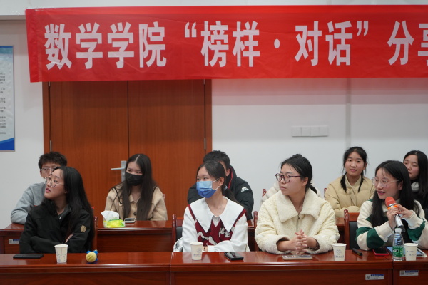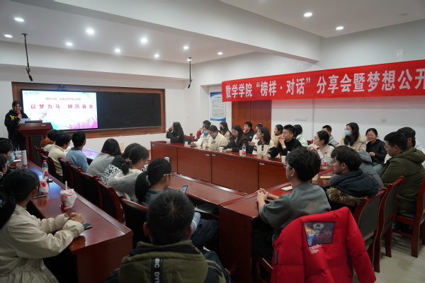 12月8日晚上,数学学院在理学楼519会议室举行“以梦为马,踔厉奋发”梦想公开课。活动邀请了校长特别嘉奖获得者胡艺涵、季馨婷、王增茂以及数学学院标兵宿舍等近十位先进榜样。学院团委书记戚月、本科生辅导员陈越以及各年级同学参加活动。