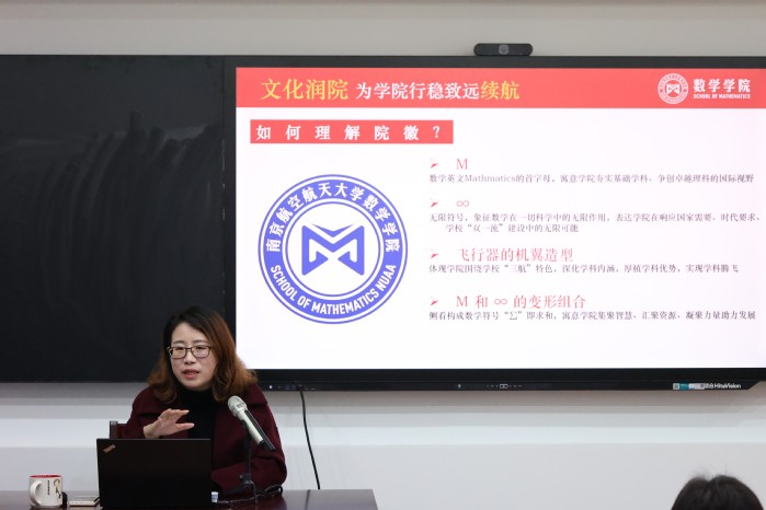 许静从“南航历史性跨越的精神密码”“数学学院从头越的时代呼唤” “数院青年创一流的使命担当”三个维度出发,用丰富的素材、生动的讲述,剖析了南航独有的“航空报国”的红色基因、“志在长空”的蓝色梦想,带领同学们深度感知南航的文化基因、文化格局、文化追求,深度了解数学学院的院史追溯、建院目标、发展战略,引导同学们增进对南航文化、数院文化的认同。