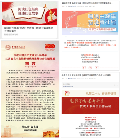 抓好主题教育活动。组织开展教职工喜闻乐见的活动,大力弘扬主旋律和中华优秀传统文化,激发教职工爱党、爱国、爱校的热情。开展了“永远跟党走”“壮丽70年,阔步新时代”“培育好家风”“团结一心战疫情,立足岗位展风采”“喜迎二十大、建功新时代”等系列主题教育活动。