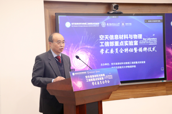 随后,祝世宁代表重点实验室学术委员会全体委员,向工信部和我校对重点实验室建设和发展的支持表示感谢。并表示,实验室学术委员会委员将坚持以国防和“三航”需要为牵引,尽心尽力出谋划策,在“新一代信息材料设计”“智能传感材料与物理”“光电信息材料与器件”等研究方向深耕,为未来空天领域发展和建设创新型国家的重大需求作出更大贡献。“空天信息材料与物理”工信部重点实验室设立在南航,必将更好的推动实验室紧密结合国际航空宇航科学与技术学科及相关科技前沿发展需求,打造“空天信息材料与物理”领域的科技攻关、人才培养、学术交流新高地。