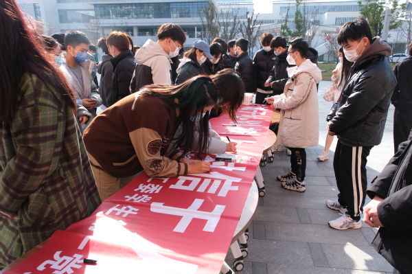 学生代表蒋世泽领誓,全体学生进行了诚信宣誓,立志做一名诚实守信的南航学子,坚持诚信待人,诚信应考,树诚信品格,塑诚信人生,争做新时代好青年。随后,大家有序地在以“立诚于心以树人,树信于人以立事”为题的活动横幅上签下自己的名字。