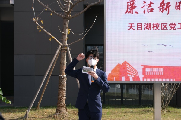 为深入学习贯彻党的二十大精神,积极营造崇尚廉洁、风清气正的教书育人环境,12月13日,天目湖校区于东篱苑广场举行了“廉洁新时代,手绘扬清风”手绘作品展。校区党工委书记王伟华、管委会/规划与建设办公室主任江波、校区党工委师生党员、入党积极分子代表参加了此次活动。