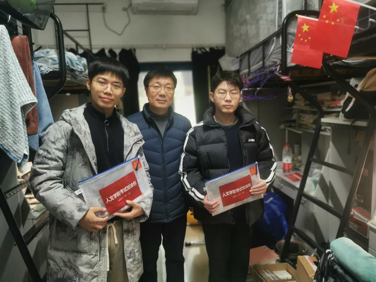 为增强考研学子的备考信心,调整备考状态,缓解考研压力,12月8日中午,人文与社会科学学院党委书记楚广兴、院长高志宏一行深入2019级学生宿舍,为考研学生送上温暖与祝福。