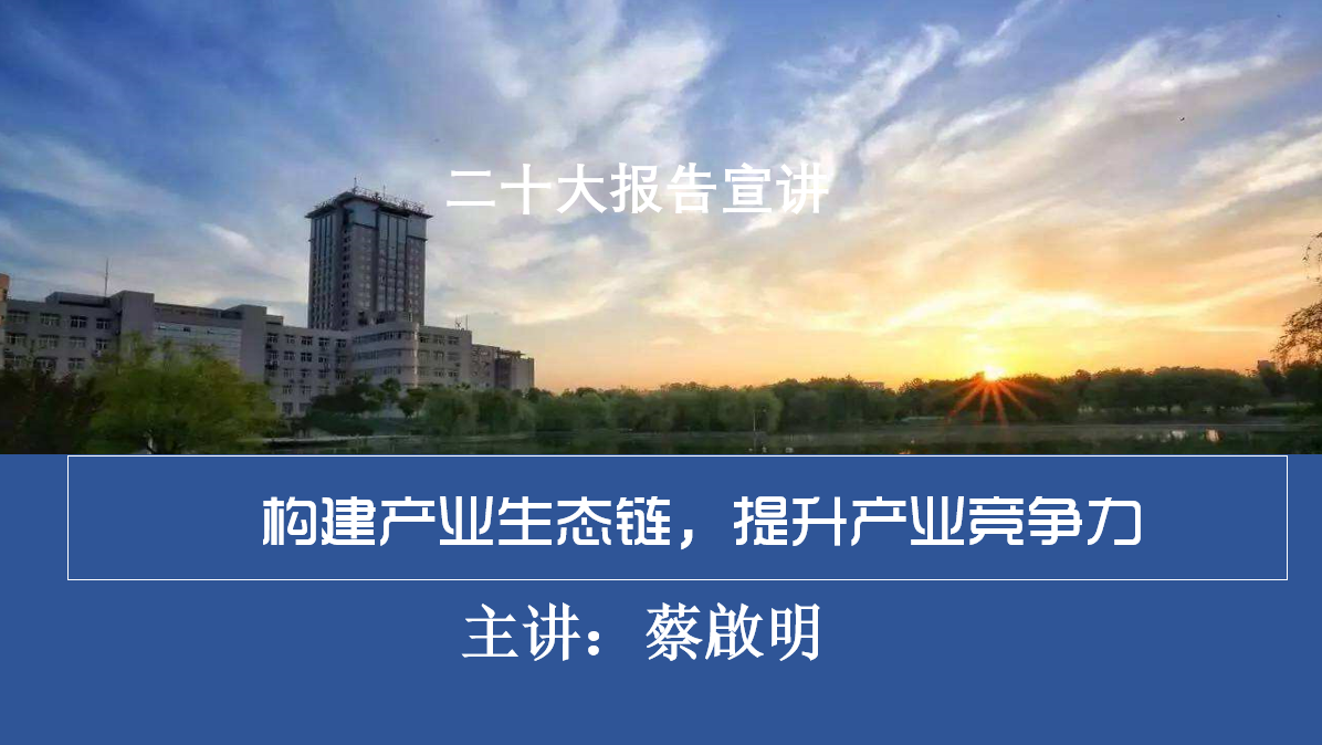 蔡啟明教授首先对党的二十大报告主题逐句进行了讲解。接着,他带领大家回顾了新时代十年的伟大变革,讲解了马克思主义中国化时代化和中国式现代化思想,阐述了全面建设社会主义现代化国家的目标任务和坚持党的全面领导和全面从严治党的主要任务,并结合民用无人机案例针对如何构建产业生态链,促进产业生态链发展作了专业辅导。