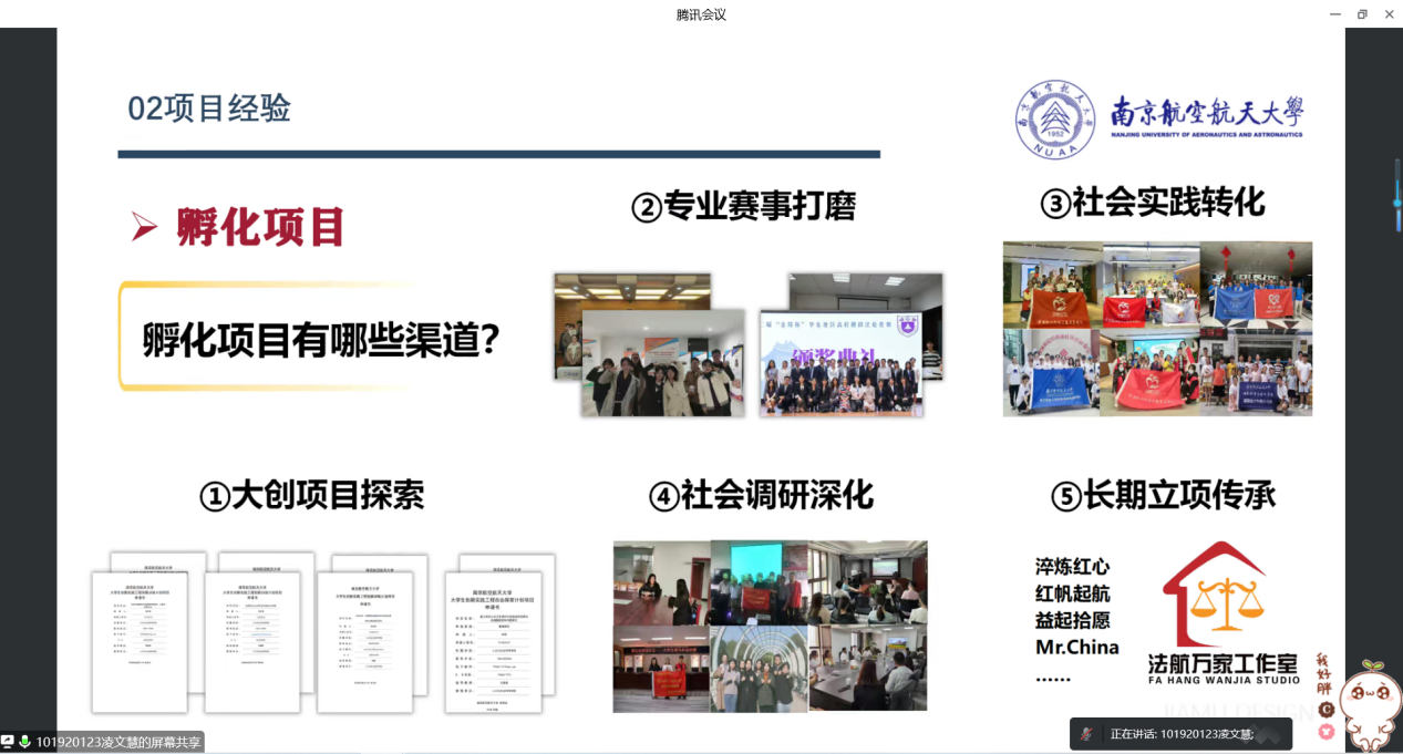 会议邀请了学院中航技奖学金获得者陈佳瑶、校长特别嘉奖获得者阮其乐、青年志愿服务大赛国赛金奖团队代表凌文慧三名同学分享了学习、实践、项目锻炼心得。