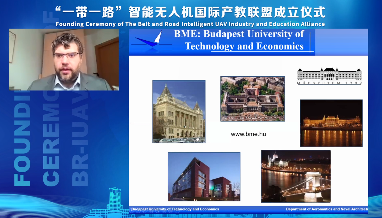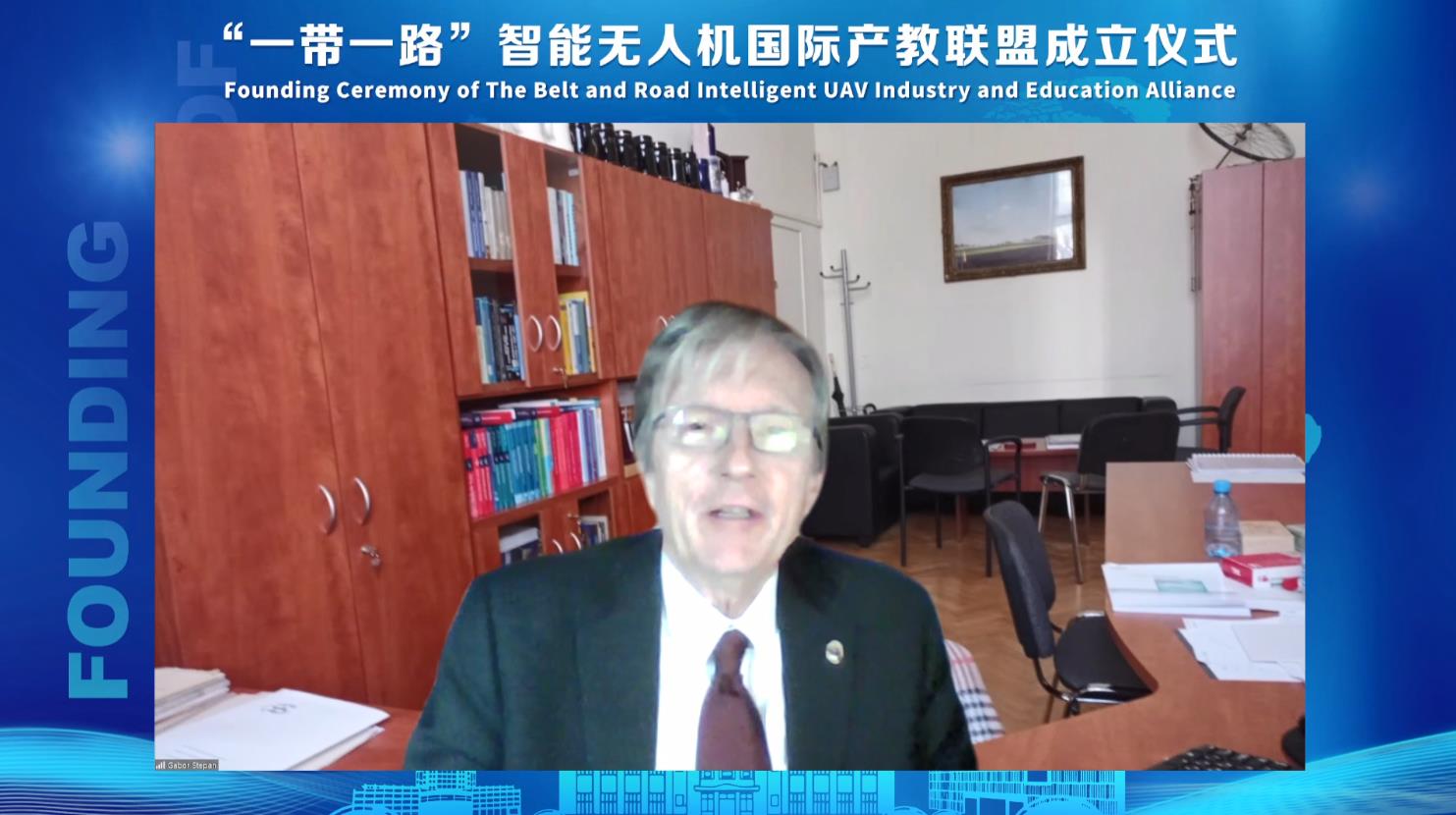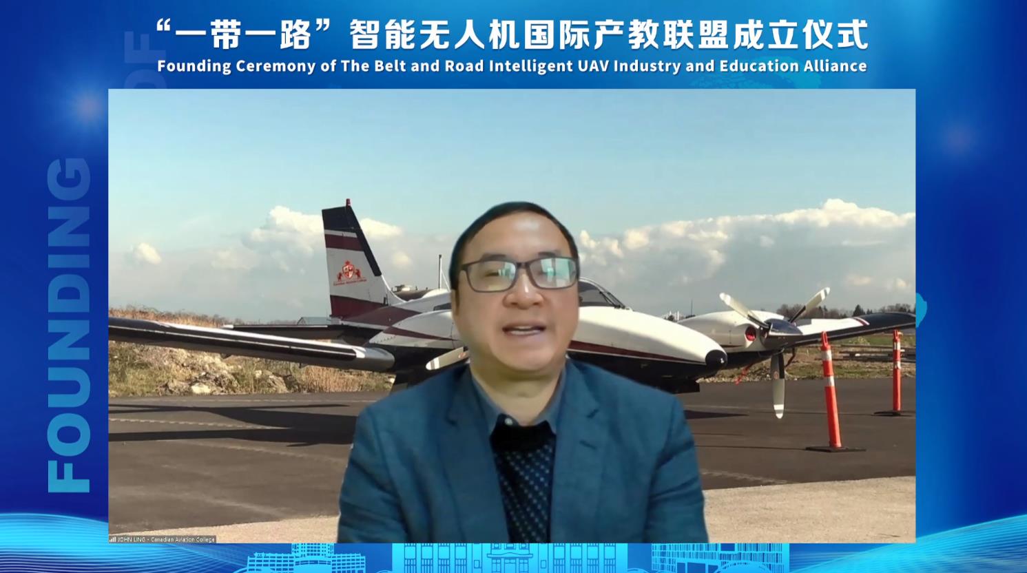 深圳无人机行业协会会长杨金才,匈牙利布达佩斯技术与经济大学Gabor Jozsef Stepan教授、David Sziczorak教授,加拿大航空学院院长John Ling分别代表中外联盟成员单位进行了发言,对联盟的成立表示祝贺,并对后疫情时代如何进一步加强联盟成员在无人机领域的合作与交流表达了各自的观点和看法。