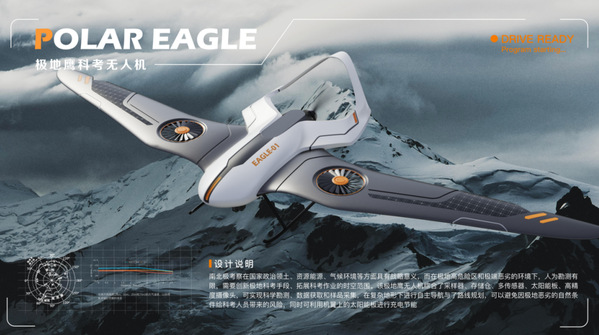 近日,2022年(第六届)全国大学生工业设计大赛终评获奖名单公布,机电学院工业设计专业2019级本科生娄素琦所设计得作品《极地鹰科考无人机》,经过分赛区初评、全国复评、终评的激烈角逐,从32个分赛区的4万余件设计作品中脱颖而出,斩获全国金奖。
