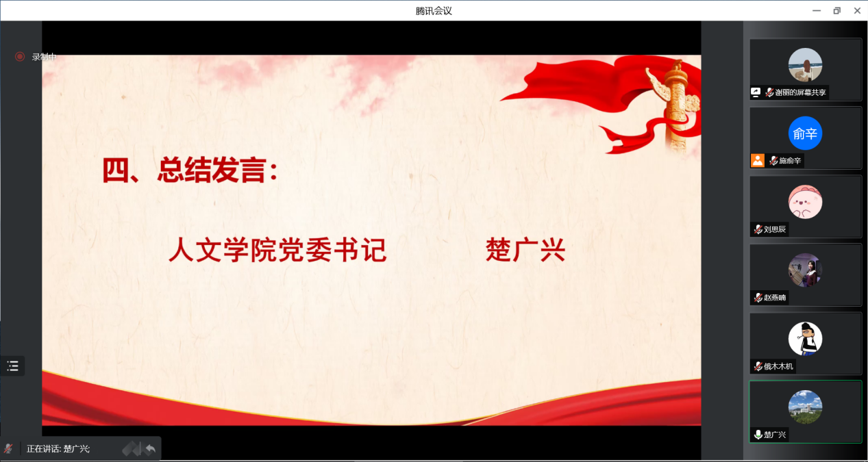楚广兴在总结中结合自己的学习体会,对学院师生开展理论学习提出了三点建议:一是要“静心”学习,保持良好的学习心态与学习环境;二是要“安心”学习,在提升政治理论素养的同时,找准指导日常学习生活和工作实践的“指南针”;三是要“动心”学习,要结合自身学、实际学,找准学习的“兴趣点”“触动点”,让理论学习更加贴近实际,提升学习效率与效果。