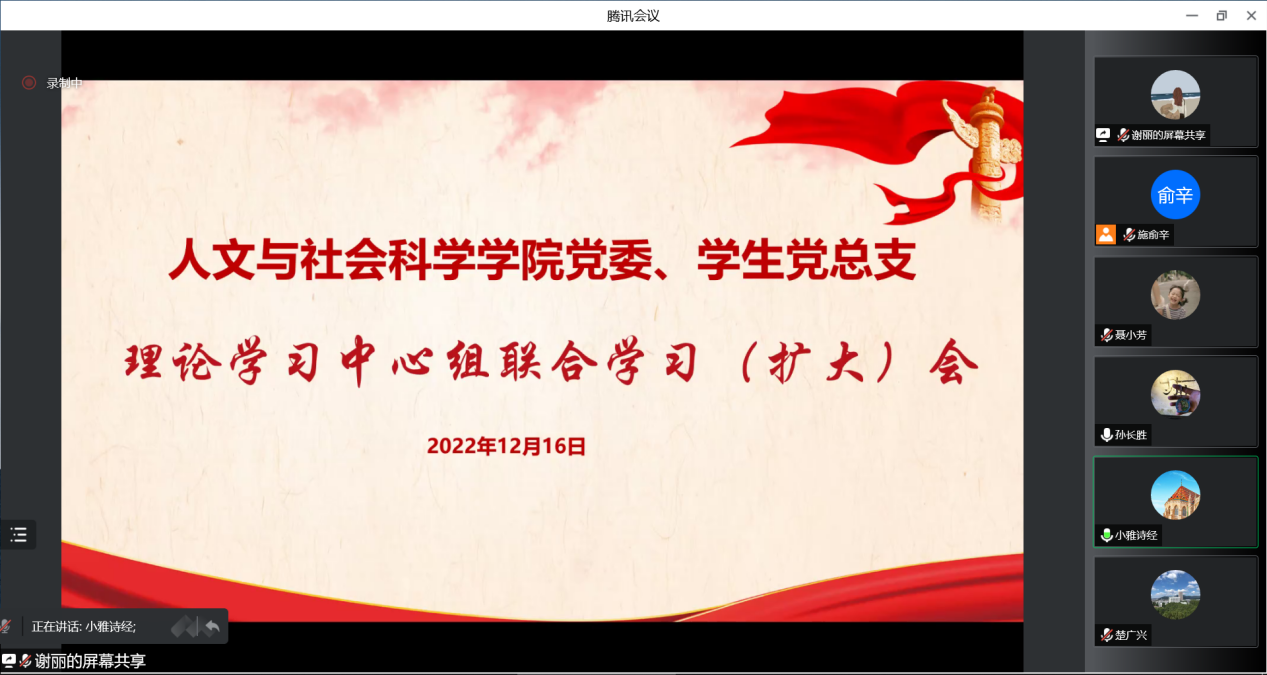近期,人文学院党委理论学习中心组与学院学生党总支委员会围绕学习贯彻党的二十大精神,坚持全面依法治国,扎实落实意识形态工作责任等相关内容开展了联合学习。理论学习中心组全体成员、学生党总支全体委员、学生党支部书记参加了学习会。会议由院党委书记楚广兴主持。