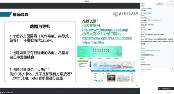 第十三届全国节能减排大赛一等奖团队队长周小川从如何选题、赛前准备、队伍组建等方面分享竞赛经历,带领同学们从往届特等奖作品中寻找创新思路。