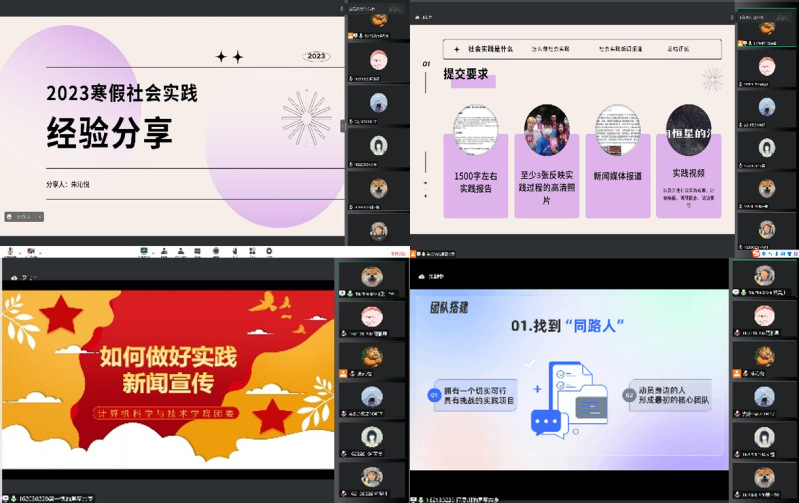 1月7日晚,计算机科学与技术学院线上举办2023年寒假社会实践指导会,学院团委书记孙明智、全体寒假社会实践团队队长和队员参加本次指导会。