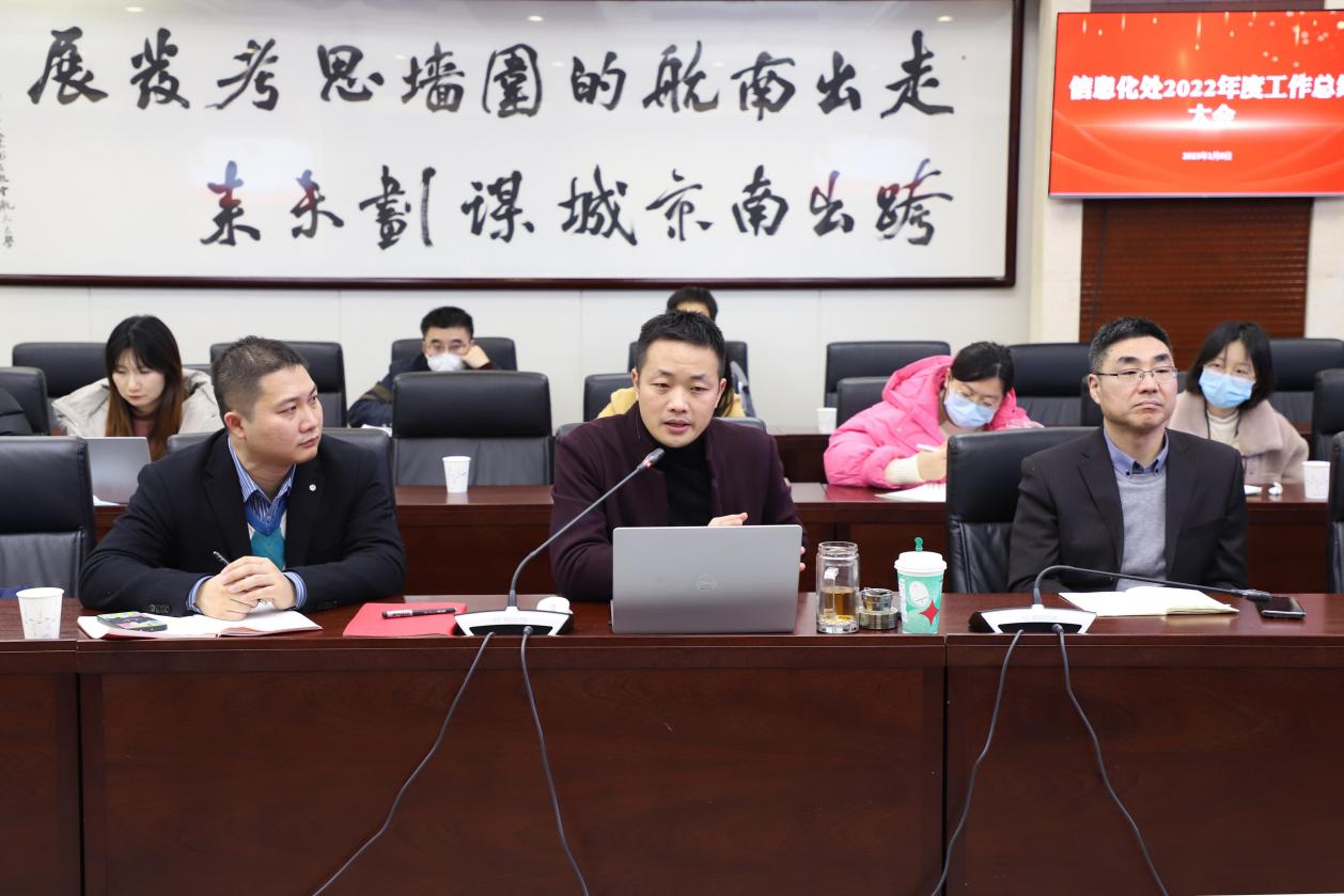 1月8日,信息化处在将军路校区1号楼527会议室召开2022年度工作总结会,处长张焱,副处长王兴虎、谢健及全体教职工参加了本次会议。会议由张焱主持。