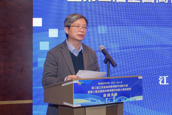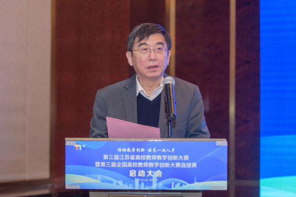 1月13日上午,我校与江苏省高等教育学会共同主办的第三届全国高校教师教学创新大赛江苏省赛启动大会在南京顺利召开。中国高等教育学会副会长姜恩来、江苏省高等教育学会会长丁晓昌、江苏省教育厅高教处处长邵进、江苏省教育厅正处级调研员蔡华、省赛组织机构主任和副主任等出席会议,省赛组织机构各委员会委员以及各校赛组织部门负责人、校赛联络员、省赛推荐教师等通过线上方式参加会议。会议由副校长施大宁主持。