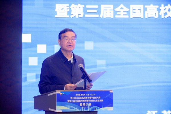 姜恩来在致辞中指出,教育是国之大计、党之大计,教师是立教之本、兴教之源。大赛始终以落实立德树人根本任务为宗旨,全力推动高等教育质量革命,为广大教师搭建学习共建、教学研究、展示自我的平台。江苏是教育大省,更是高等教育强省,希望依托竞赛的形式,持续加强高校师资队伍建设,打造高校教师教学创新的江苏品牌,促进新时代江苏高校教学创新的新气象、新局面。