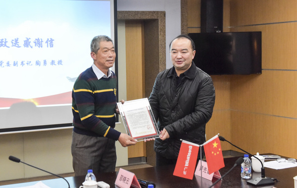 黄志球介绍了近年学校事业发展总体情况、“十四五”发展规划和下一步校友工作的思考。陶勇代表学校对上海校友会在建校70周年系列庆祝活动中做出的突出贡献表示感谢并致送感谢信。