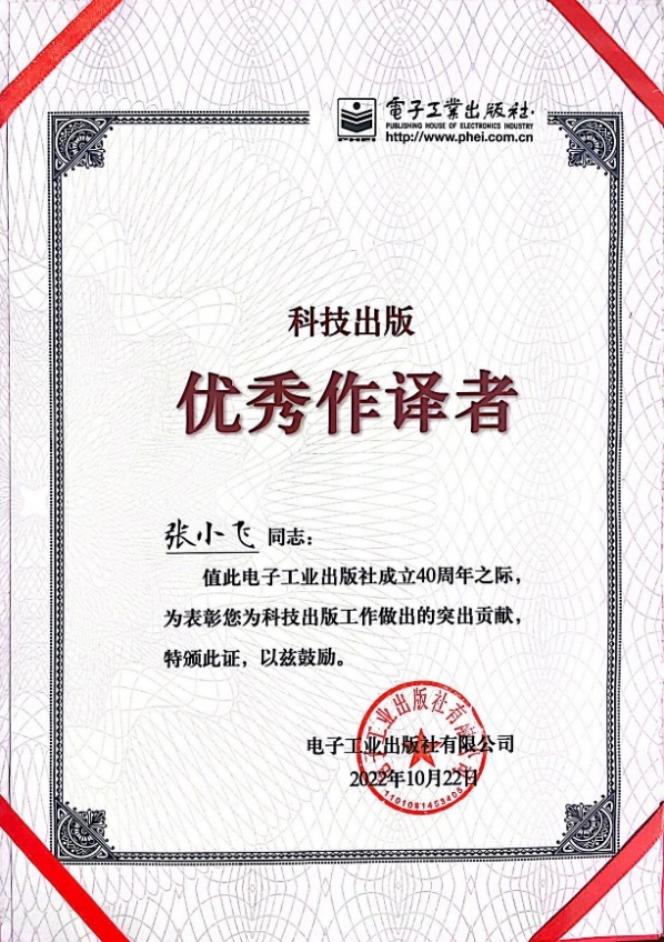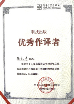 近日,在电子工业出版社成立40周年庆祝活动中,电子信息工程学院/集成电路学院徐大专教授、张小飞教授荣获电子工业出版社“科技出版优秀作译者”称号。