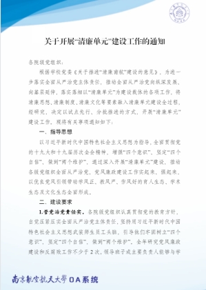 坚持守正创新推进“清廉南航”建设。在江苏省高校中率先建设“清廉南航”,系统提出“四清一廉”工程,全面创建“清廉单元”,基层清廉底色越擦越亮,以清为美、以廉为荣的价值取向得到广泛认同。突出“不想腐”在一体推进“三不腐”中的根本性作用,将廉洁文化建设贯穿思想政治教育始终,深化“5244”廉洁教育体系,组织好反腐倡廉“每季一课”,连续三年举办“清廉南航”宣传教育周活动,面向学生开设“清廉人生”选修课程,学廉知廉践廉逐步深入人心。