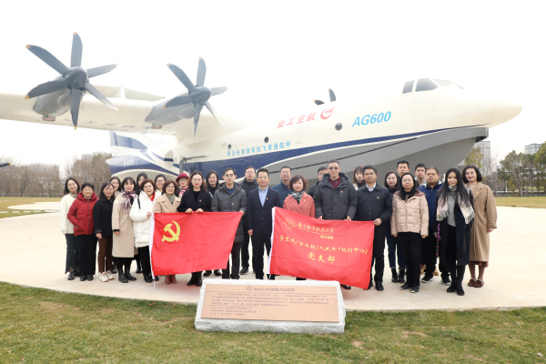 跟随讲解员将军路校区教师周若冰和航空学院硕士生朱俊翰的介绍,支部全体党员全面了解了园内展示的航空航天器,倾听了新中国自行生产的第一型飞机初教5、大型水陆两用飞机AG600静力试验机、长征四号运载火箭、我校研制的大型无人靶机长空一号等航空航天器的研制发展历程。