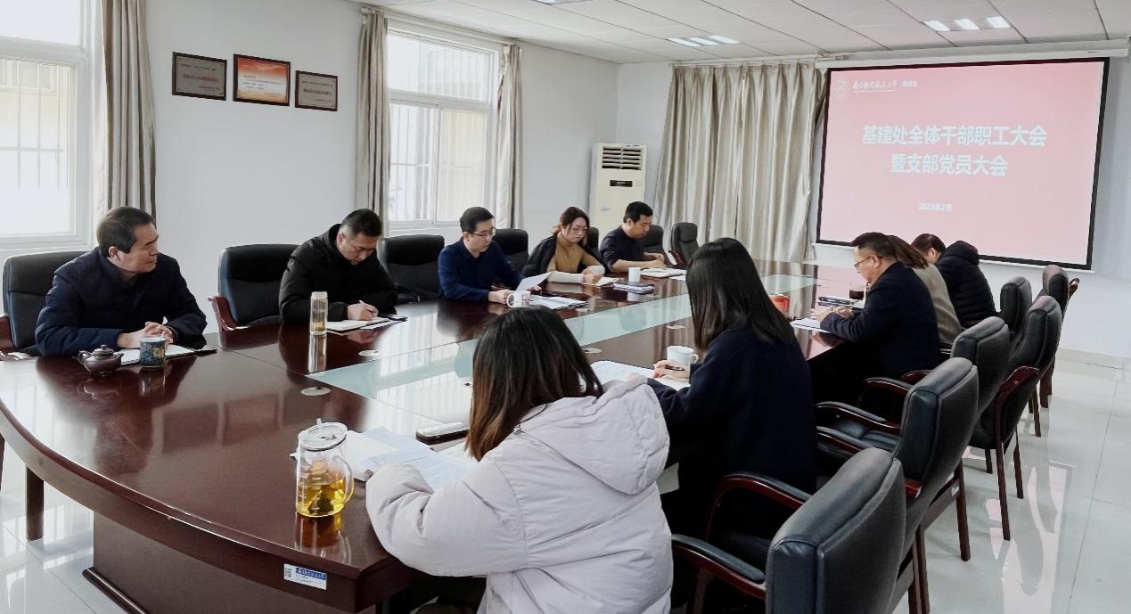 2月20日,基建处组织召开全体干部职工大会暨支部党员大会,开展新学期第一次集中学习研讨,安排部署2023年度基建处重点工作。会议由党支部书记、处长杨杰主持,基建处全体干部职工参会。