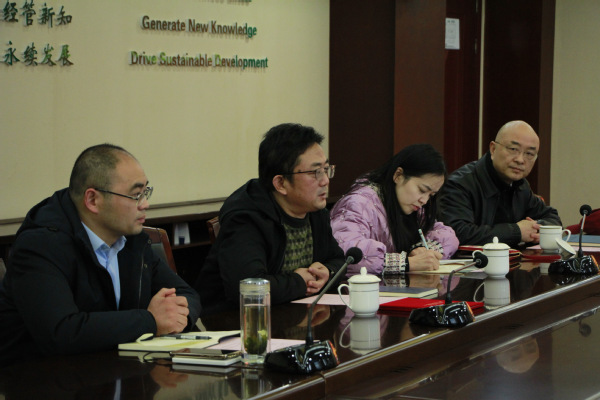 周德群首先代表学院对江苏省国信集团朱又生一行的到访表示热烈欢迎,并向其介绍了经管学院的历史发展、学术科研、学科设置和人才培养等基本情况。