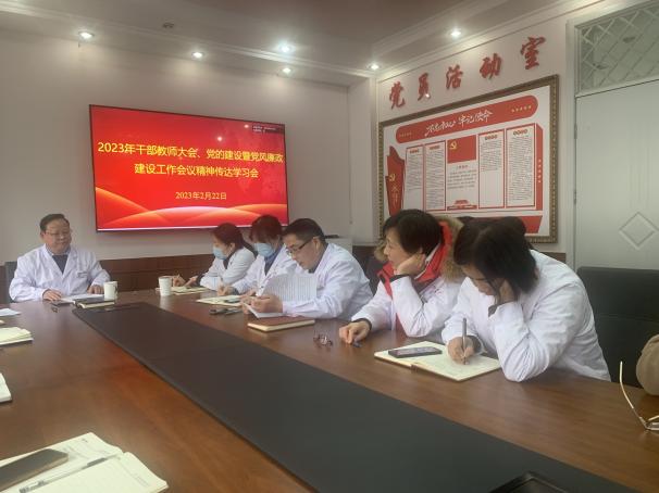 2月22日下午,校医院召开了学校2023年干部教师大会、党的建设暨党风廉政建设工作会议精神传达学习会。医院全体中层以上干部、党员、发展对象和职工代表等参加了学习会。会议由医院直属党支部书记刘协和主持。