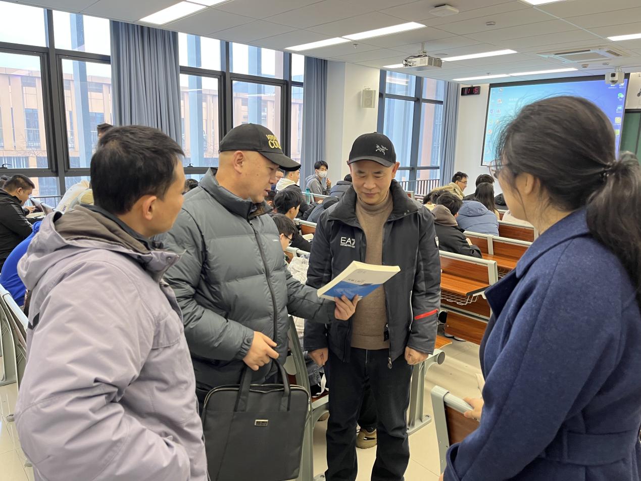 随后,刘建成一行到达天目湖校区,看望2021级和2022级学生。在辅导员陈欢、王金璐的陪同下,走进天目湖校区学生课堂。