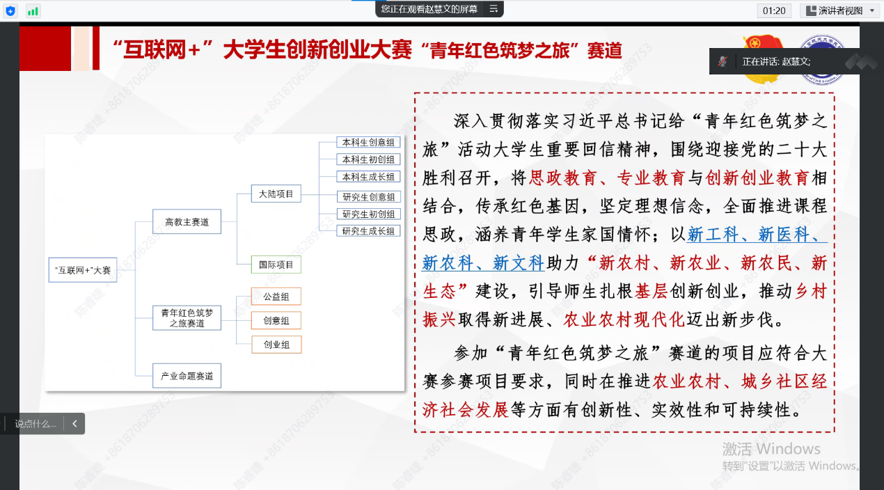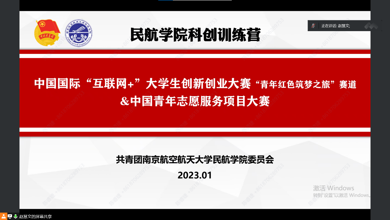 民航学院团委书记赵慧文老师首先为大家介绍了两项比赛的赛事背景、参赛要求、内容分析和评审要点,同时结合往届优秀案例,带领同学们系统梳理项目打磨的核心要点,及路演文稿的制作思路。