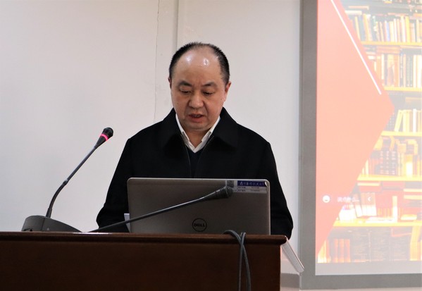 馆长袁家斌代表图书馆党总支和行政向大会作了题为《聚力学科发展,打造书香校园》的工作报告,回顾了2022年图书馆的主要工作并对2023年工作进行动员部署。他总结了党建和思想政治工作、国家知识产权信息服务中心建设、文献资源管理、智慧图书馆建设、天目湖新馆建设、阅读推广工作、基础服务等方面的工作情况以及取得的成绩,对图书馆全体馆员一年来的辛勤付出表示感谢;对于2023年的工作,袁家斌归纳为十大重点工作,主要包括4.23读书节活动、新一轮岗位聘任工作、图书情报专硕点建设、天目湖校区新馆建设、图书馆青年馆员培养、高校国家知识产权信息服务中心建设、学科评价服务工作、制度建设等。他号召全体馆员在新的一年里,围绕图书馆十大重点工作,凝心聚力,创新奋进,以“钉钉子”的精神推动各项工作顺利开展,助力书香校园建设。