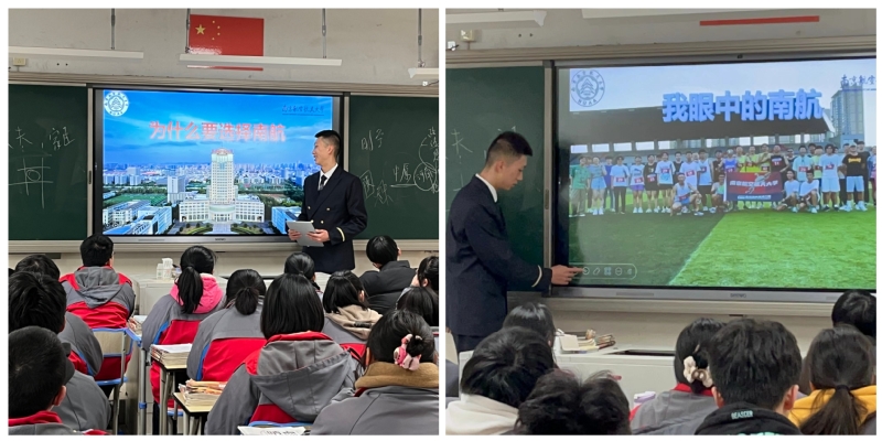 再次踏入高中母校的大门,走进曾经学习奋斗过的教室,顾丁一从自己选择南航、选择飞行的初心讲起,宣传介绍了南航的发展历史和辉煌成就,通过图片、视频向学弟学妹们展示了南航优美的校园环境、先进的基础设施以及自己新鲜热乎的大学生活。