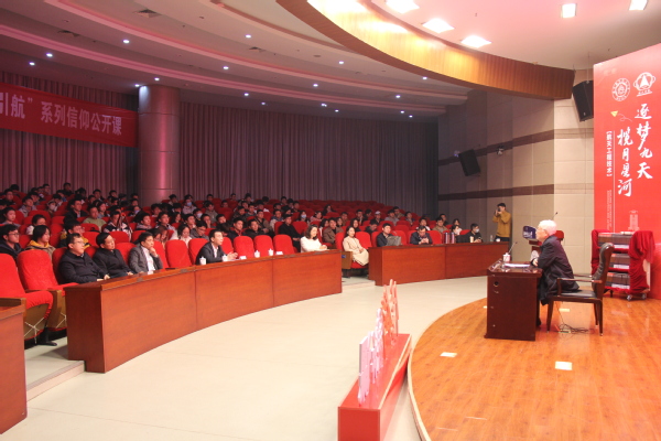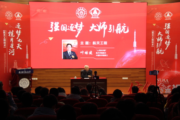 3月1日晚,由“人民科学家”、航天学院院长、中国科学院院士叶培建主讲的 “强国逐梦•大师引航”系列课程之《航天工程技术》在将军路校区1号楼4楼报告厅举行。中国空间技术研究院政工部副部长吴晓波、航天学院领导班子全体成员及三百余名学生代表现场聆听授课。
