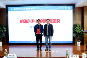 为激励南京航空航天大学力学学科的青年科研人才和研究生奋发图强,勇于创新,勇攀科技高峰,胡海岩和南航教育发展基金会共同发起设立“胡海岩科技创新奖励基金”。本次会议举办了首届胡海岩科技创新奖颁奖仪式,胡海岩和施大宁为青年教师科技创新奖获得者易敏教授和研究生科技创新奖获得者方孙淼、于鹏鹏、冯浩人和周万琦颁奖。