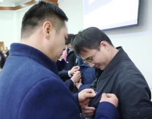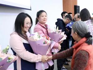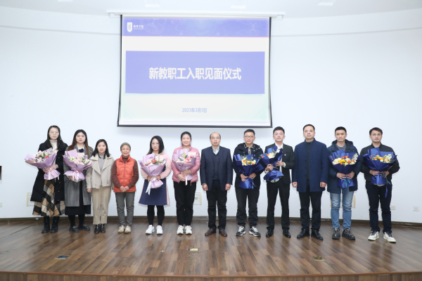 随后,物理学院还为2022年下半年以来新入职的教职工举行了新教职工入职见面仪式,陈修文书记、刘友文院长、欧珊副书记、赵志敏教授共同为新教工佩戴院徽并送上鲜花。