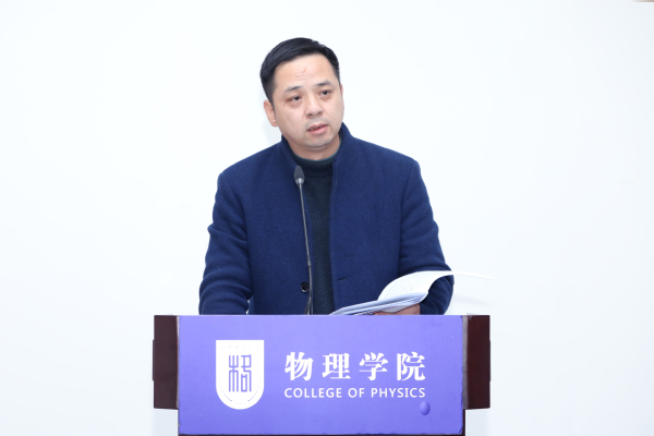 院长刘友文传达了学校2023年干部教师大会上校长单忠德的讲话精神,并结合学院实际情况作了题为《新使命、新思考、新作为,保障学院高质量内涵式发展》的专题报告,分析了学院当前的发展机遇,对学院“十四五”发展重点指标的推进情况、学院2022年度KPI考核结果情况进行了介绍,从人才培养、师资队伍、科学研究、对外合作与交流、治理体系和治理能力及物理空间保障等方面介绍了学院的发展思路和对策,并部署了学院2023年十项重点工作。他指出,物理学院要着眼学校办学格局,结合学院自身学科发展和人才培养需求,加强学院人才梯队建设,深入探索理工交叉融合的切入点,引导学院教师立足原始创新,扩大学院对外合作与交流,优化学院资源分配体制机制,谋划学院新发展。在国家高度重视基础研究发展和学校大力推进基础学科建设的机遇和背景下,稳步推进物理学院有特色、高质量、内涵式发展。