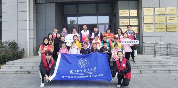 为在新征程上深化拓展学雷锋活动,3月4日,电子信息工程学院/集成电路学院联合“双百共建”结对的古雄街道开展青年志愿行动,带领10余名困境儿童通过参观南京航空航天大学航天教育教学基地、航空航天科普课程课堂,助力困境儿童逐梦成长。